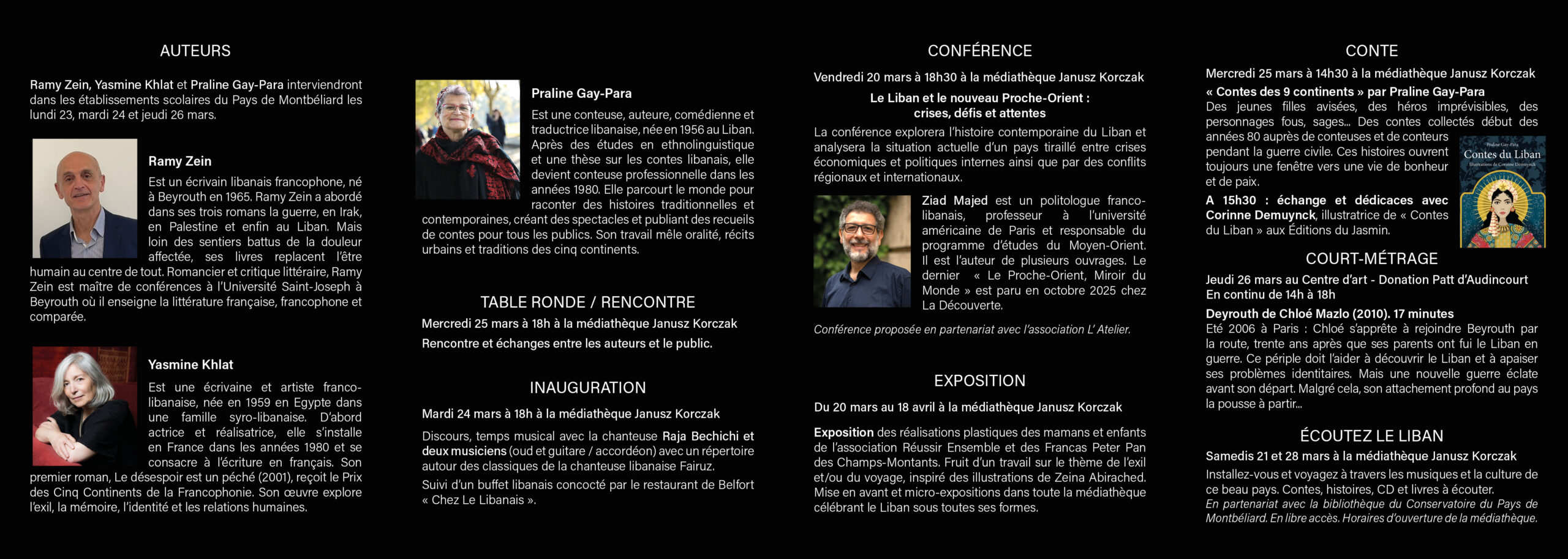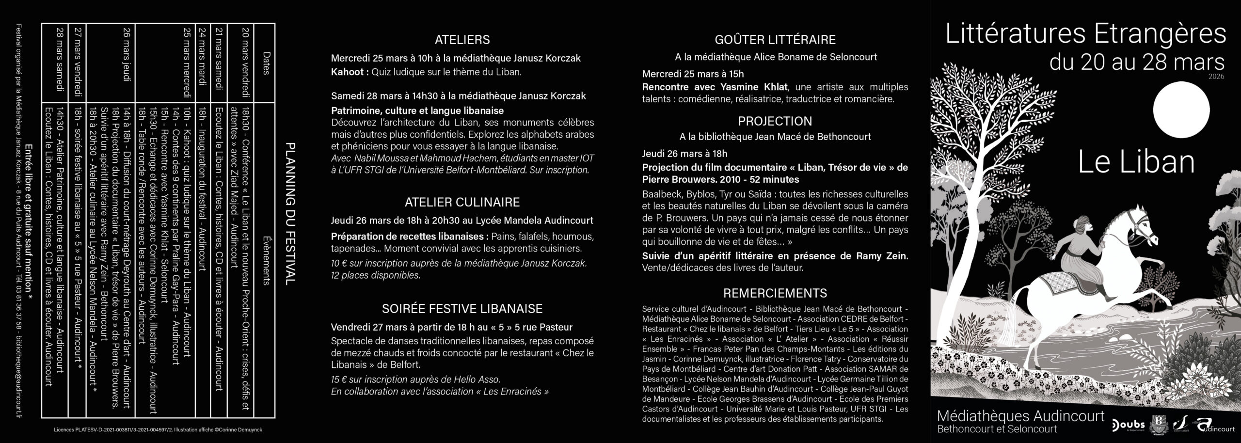 Du 20 au 28 mars 2026, la Médiathèques d’Audincourt, vous invite à un voyage au cœur du Liban, pays de culture, de mémoire et de résilience.